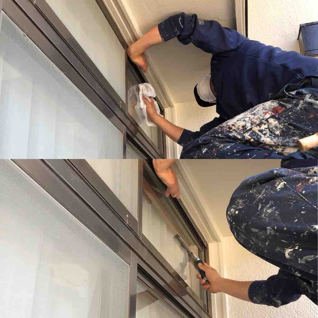 密着プライマーを吹き付け。透明なのでよくわかりませんね😅