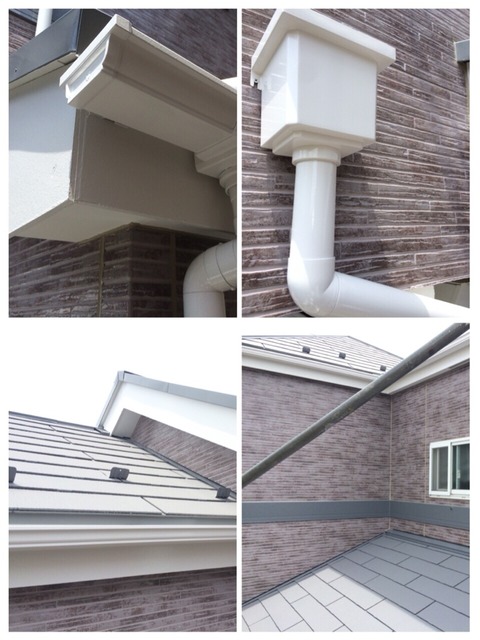 雨樋、シャッターは密着プライマーを塗装してからセラMレタンを2回塗装しました。破風、帯板は、エポMプライマー塗った後にセラMレタン2回塗り。