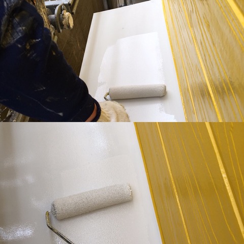 白錆止めの上から中塗りと上塗りを行い、午前中で完了。