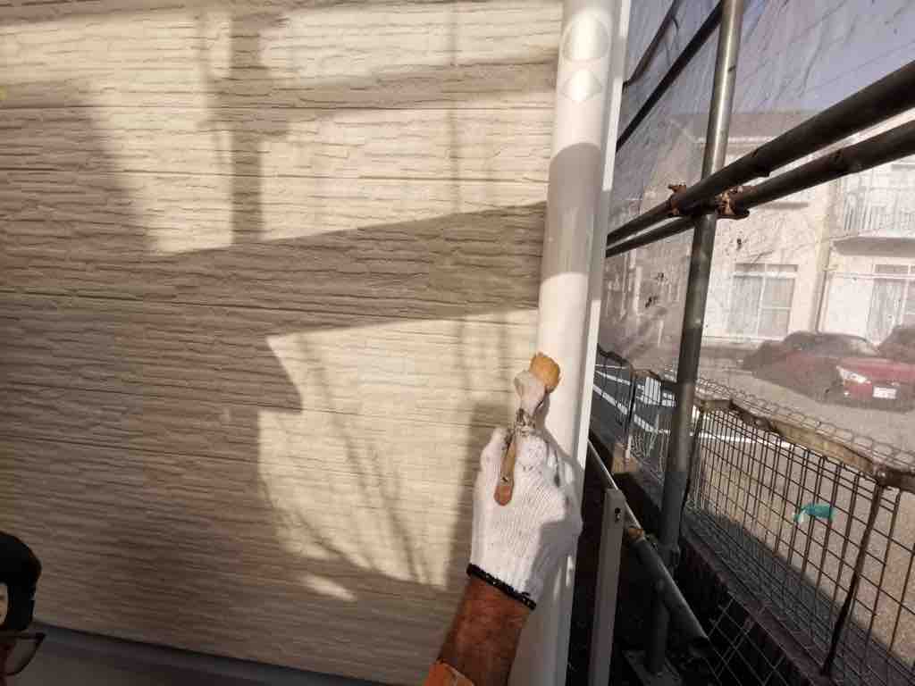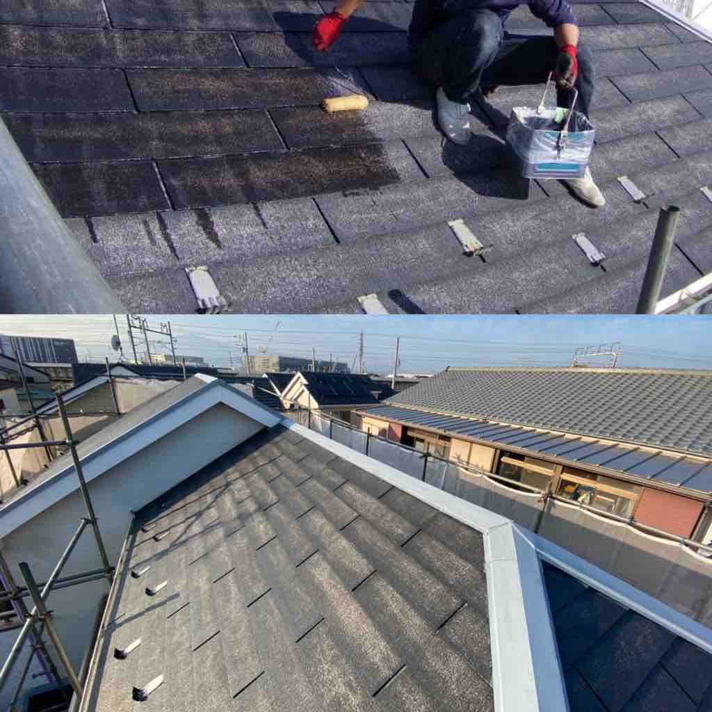 屋根は日本ペイントのベストシーラーで下塗りを行い、鉄部はグレーの錆止めを塗布しています。
