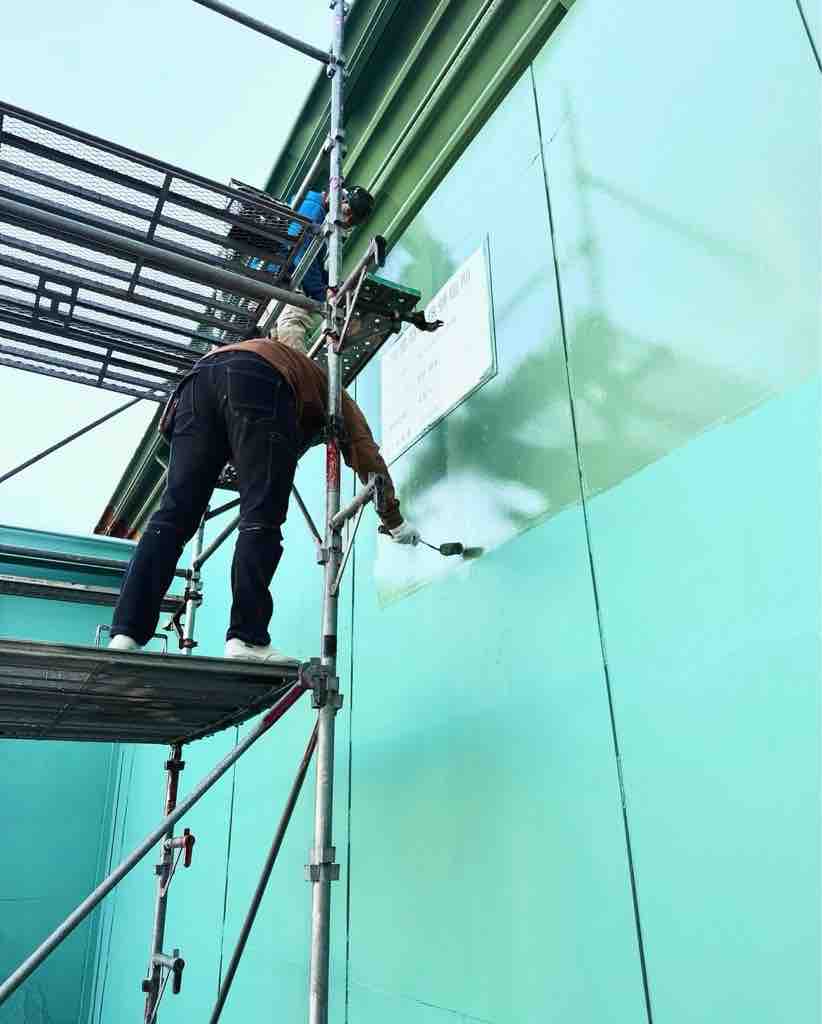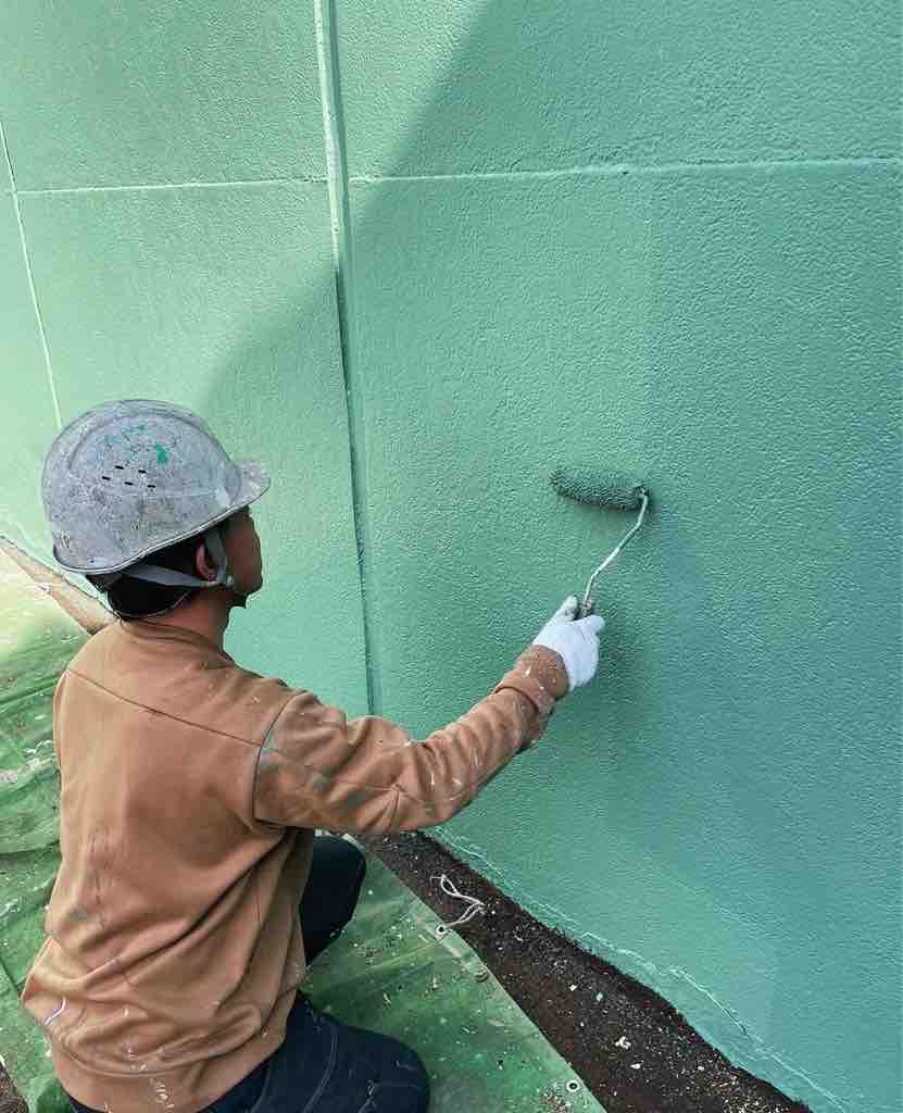 ↑こちらは上塗りを施工中です。