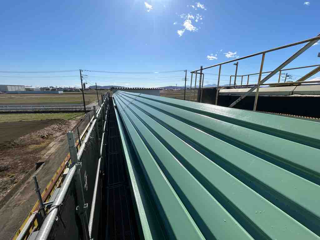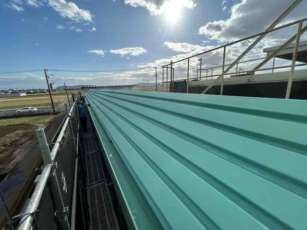 ここまでが1日となり、月曜日には屋根部分とH鋼の天端の錆止めを塗装しました。